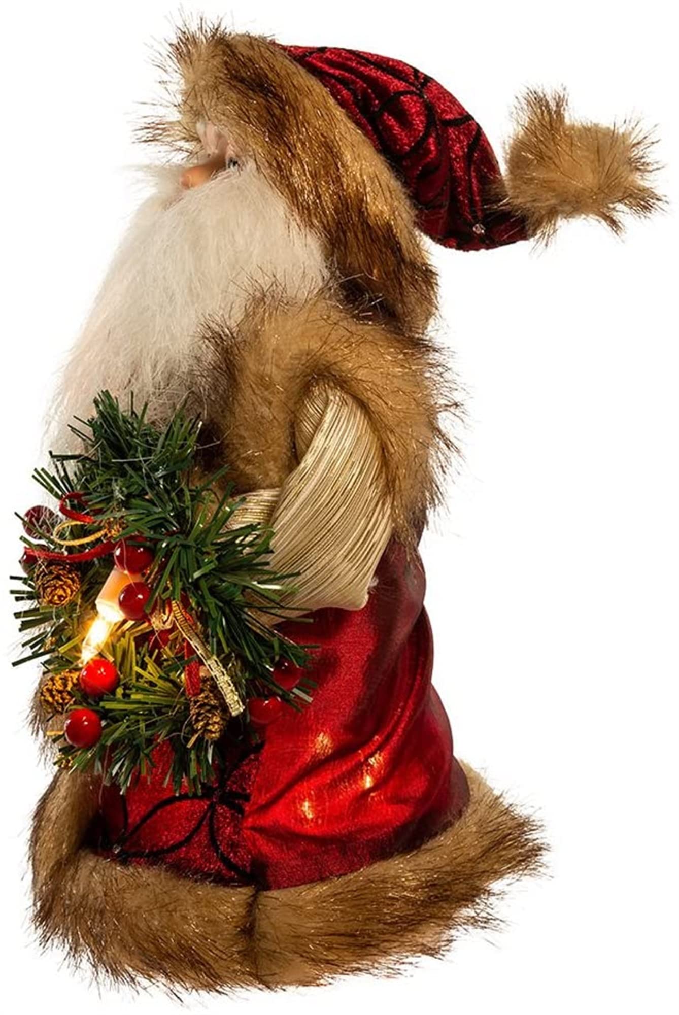 Complete the lighting and decor of your Christmas tree with Kurt Adler's 10-inch 10-light burgundy and brown Santa treetop. This beautiful 12" treetop featured Santa Claus in a long burgundy coat and hat trimmed in brown faux fur. He is lit from within by 10 lights for a festive glow.