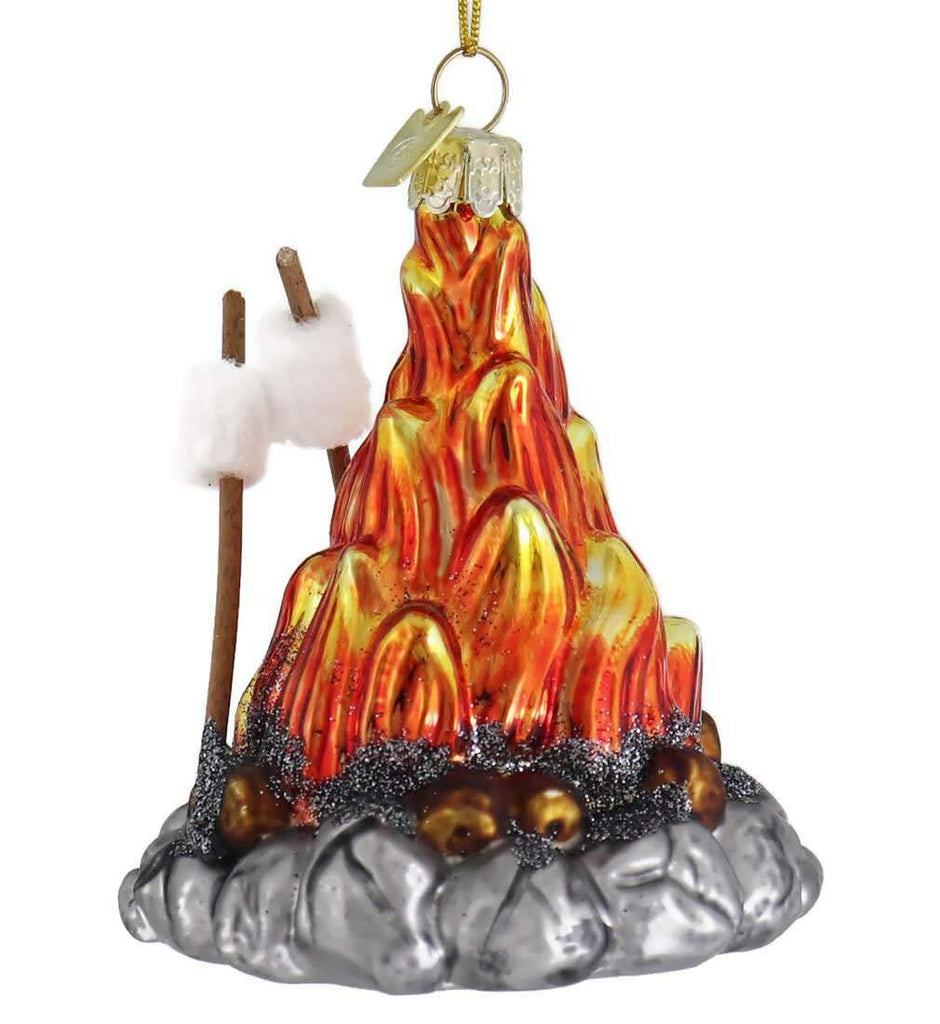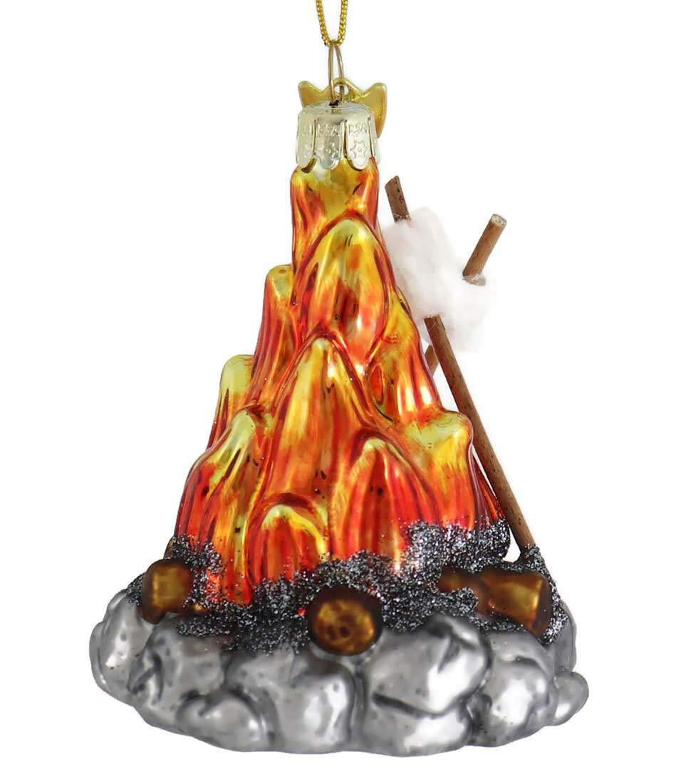Kurt Adler's Noble Gems™ glass campfire ornament is a fun addition to your holiday décor or Christmas tree. This ornament is perfect for campers of all ages and features orange and red flames, silver glittered accents and two marshmallows to toast! Part of Kurt Adler Noble Gems™ collection | Made of glass and paint/mica | Hangs from gold string | Perfect for any holiday décor More Information UPC 086131536021 Split 8 Case 32 Color Multicolor Item Size 3.5in Packaging Bulk Pack